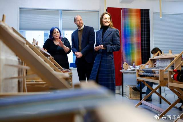 随后,夫妇二人来到斯特灵的 “激进织工” 慈善工作室,这是一家致力于解决社会孤立、帮扶受创伤人群的独立机构。在创始人梅里・布雷斯林的带领下,他们了解了苏格兰格子花纹织造的传统,并亲手参与编织,其作品将用于工作室冲击世界纪录的项目 —— 制作一条黑红相间的格子呢围巾,所得款项将捐赠给斯特灵苏格兰格子中心。凯特感慨,编织是一种极佳的自我认知方式,能以创造性、低评判的形式探索内心。
